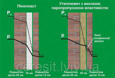 Неправильна товщина утеплювача Теплопровідність сирого залізобетону збільшується, і, незважаючи на наявність утеплювача, у будинку стає ще холодніше. Через невелику товщину пінопласту, точка роси розташована не в утеплювачі, а в стіні будівлі, дуже близько до її зовнішньої поверхні.