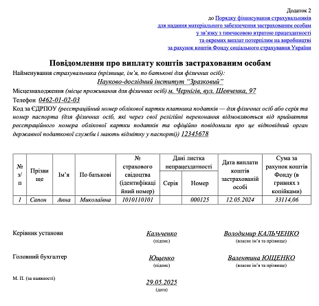 Після отримання декретних протягом місяця до Пенсійного фонду України необхідно подати повідомлення про виплату коштів застрахованим особам.