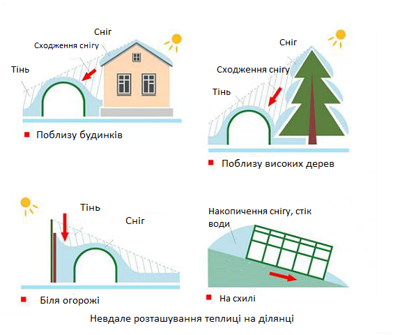 Парники без системи опалення розташовуються за напрямком з Півдня на Північ, а конструкції з системою постійного опалення – з Заходу на Схід.
