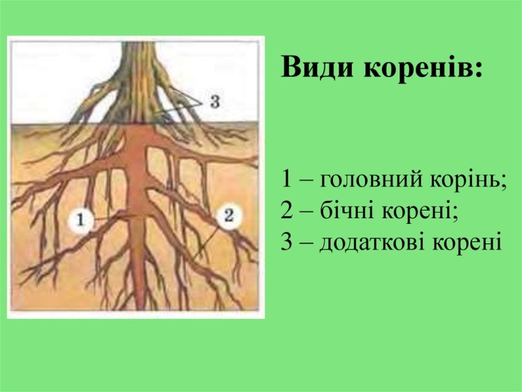 Є головний корін-він глибоко проникає у грунт і надійно втримує надземну частину.Він завжди один. Є додаткові корені-утворюються на будь-якій частині …