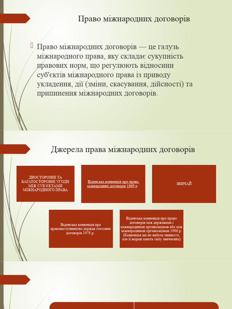 Definition. Договори, інші угоди обов'язкового характеру між різними країнами, організаціями, державами, що передбачають обов'язки й права між сторонами.