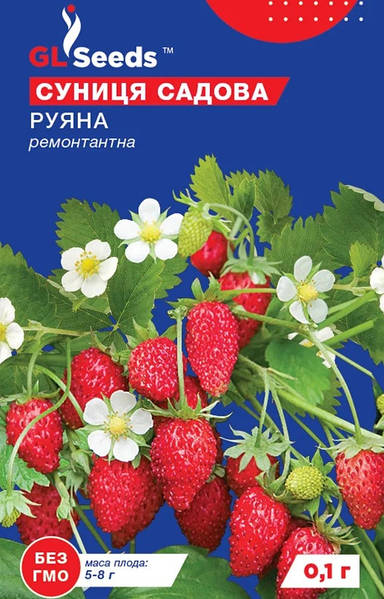 Руяна – популярний урожайний ремонтантний сорт суниці садової. Вуса і розетки практично не утворює. Рослини сильнорослі, кущі заввишки 45-50 см, ягоди конічної …