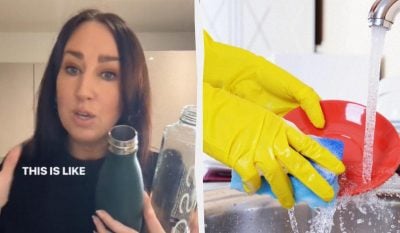Оцет. Налийте в пляшку трошки теплої води (від ¼ до ½), додайте оцет (¼ склянки) і трошки миючого засобу. Закрийте ємність, добре її потрясіть, залиште на 3-5 годин, періодично струшувати пляшкою. Потім вилийте рідину і добре промийте ємність чистою водою.