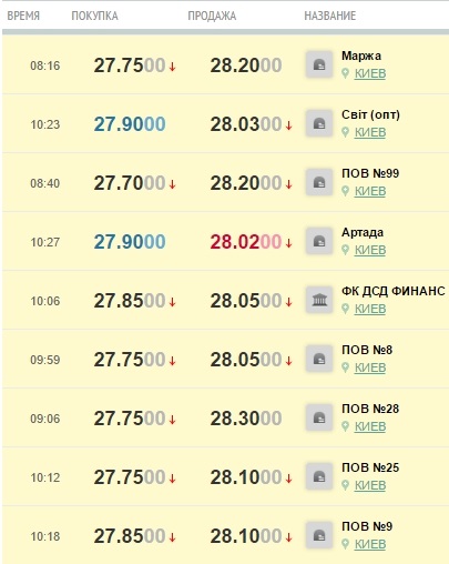 Курс валют в банках України