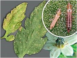 Симптоми ураження трипсами огірків Сріблясті плями на листках: Уражені листки можуть мати сріблясті або блідо-жовті плями, які є результатом живлення трипсів. Пошкоджені пуп'янки та квітки: Трипси можуть атакувати огіркові пуп'янки та квітки, що призводить до їх висихання та випадання.