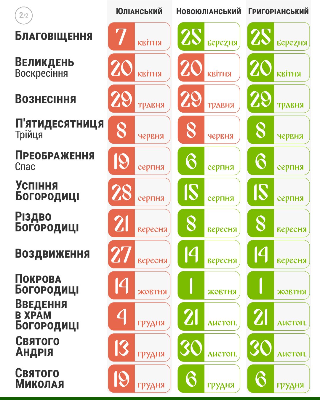 | 2022 | 17 квітня | 24 квітня |