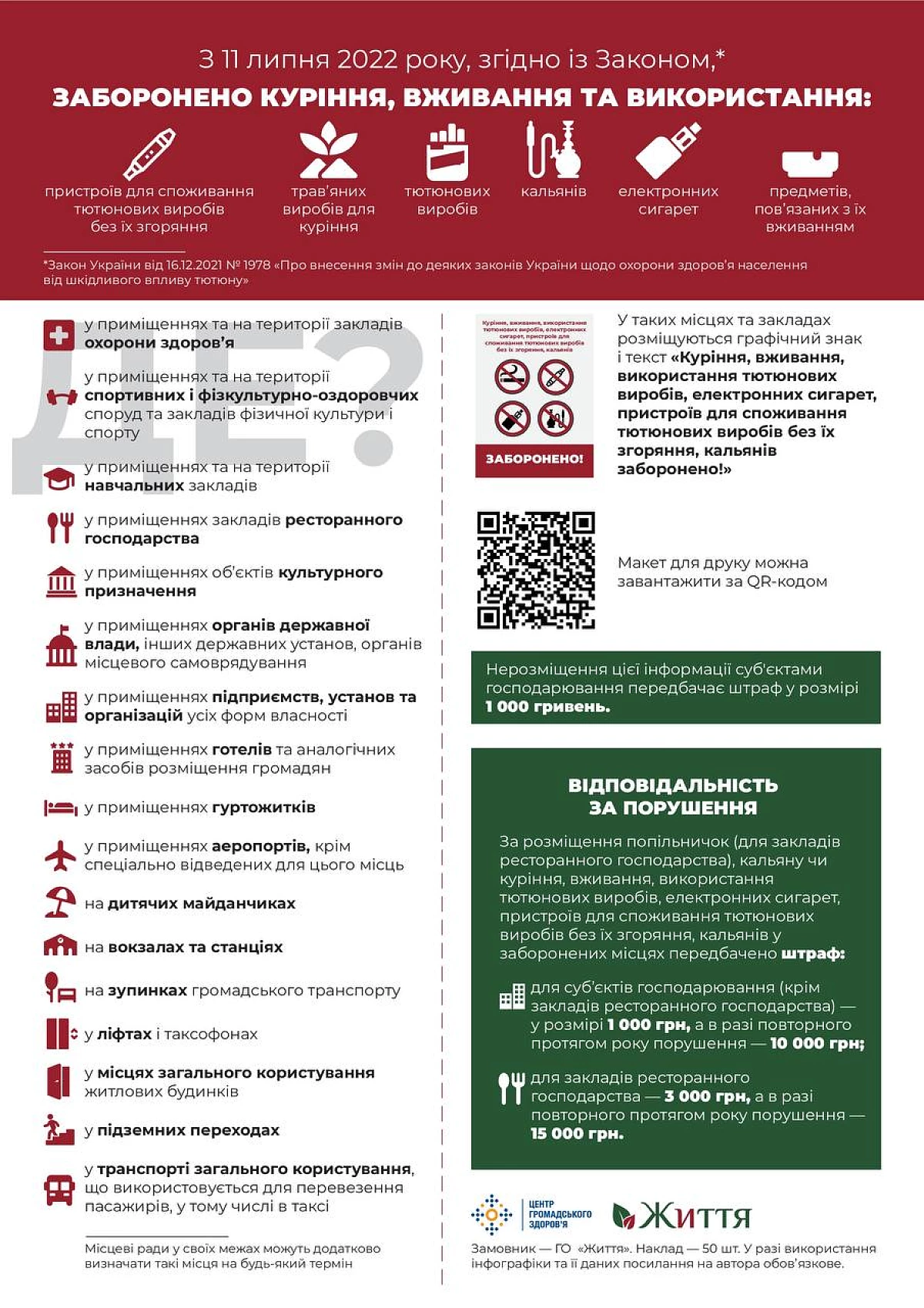 Відповідно до ст. 175-1 Кодексу України про адміністративні правопорушення, передбачено відповідальність за куріння у місцях, де це заборонено законом, а також в інших місцях, визначених рішенням відповідної сільської, селищної, міської ради: попередження; штраф від 51 до 170 грн.’);}],[{id:’rOdyaNnpGvX8i-gPrv6KuAo__29′},function(){window.jsl.dh(‘rOdyaNnpGvX8i-gPrv6KuAo__29′,’